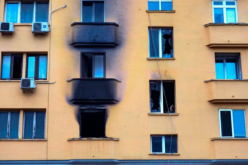 Пожарът е тръгнал от апартамент на втория етаж, в който живеят мъж с психологични отклонения и майка му. На място бързо са пристигнали седем коли за спешна помощ и четири пожарни автомобила с 22 огнеборци.