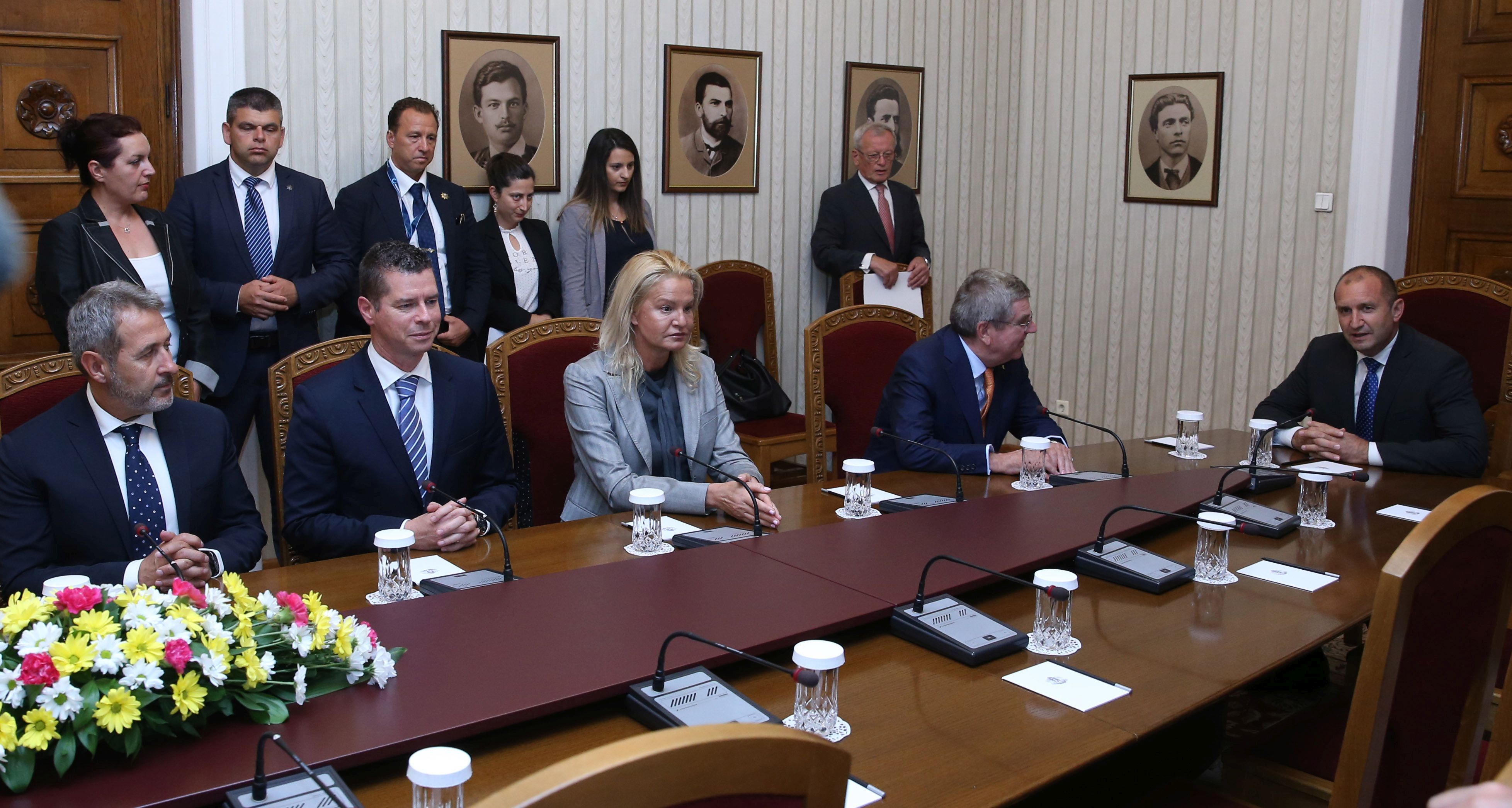 Последната среща на Томас Бах в България бе с президента Републиката Румен Радев. „ България е високоуважаван сътрудник в олимпийското придвижване, а както можах да се убедя страната се оправя ослепително с организацията и семейството на три международни шампионати в три разнообразни олимпийски спорта, “ съобщи президентът на Международния олимпийски комитет в диалога си с президента на „ Дондуков “ 2. Сред гостите беше и ръководителят на Българския олимпийски комитет Стефка Костадинова.