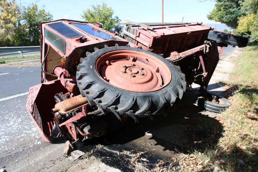 Колело на трактор се откъсна и причини катастрофа на Е79