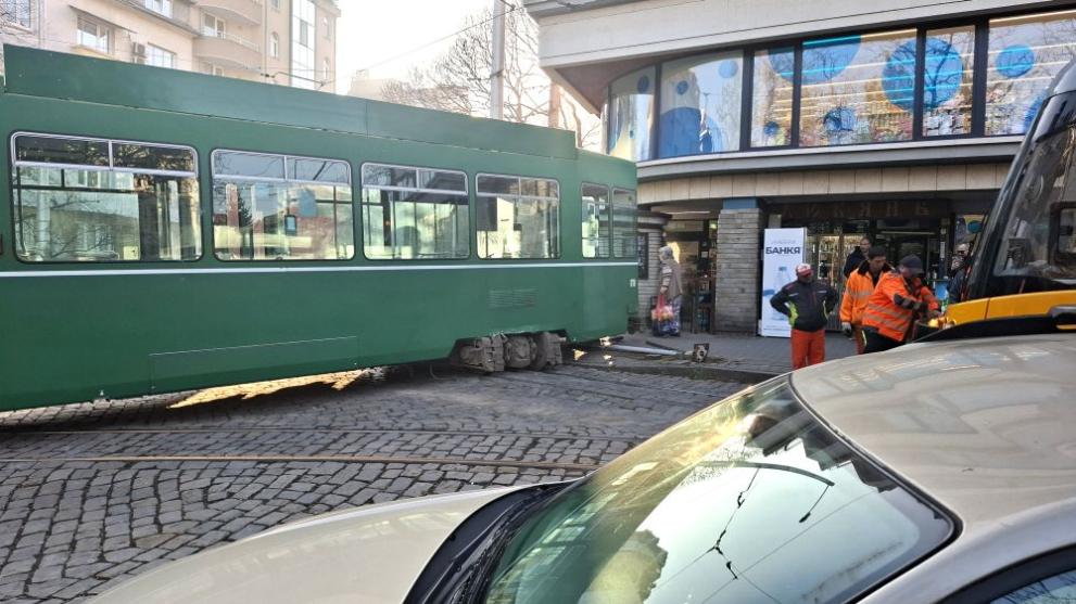Това провокира запушване, като придвижването и на други трамваи по същия маршрут беше спряно към 9:40 ч.