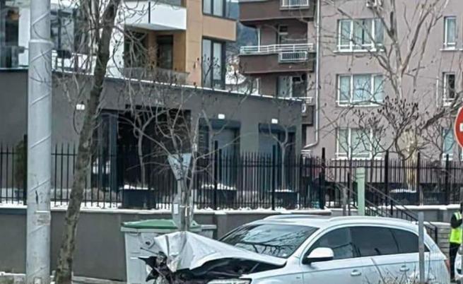 Автомобилът е понесъл съществени вреди. Сблъсъкът е станал на колелото на трамвай №4.