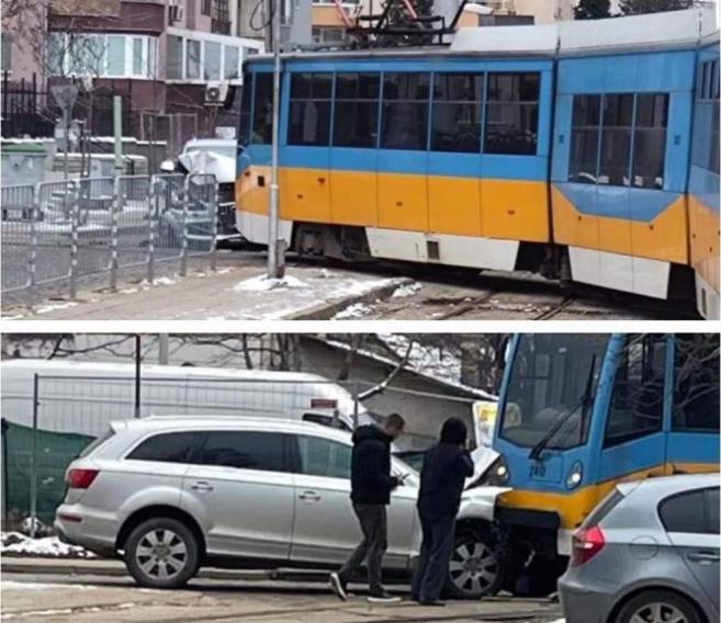 Трамвай и автомобил се удариха на столичния бул. " Цар Борис III ", излиза наяве от фотоси, оповестени в обществените мрежи.