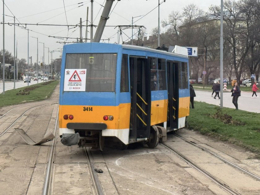 Трамвай се натресе в стълб на столичния бул. Мария Луиза