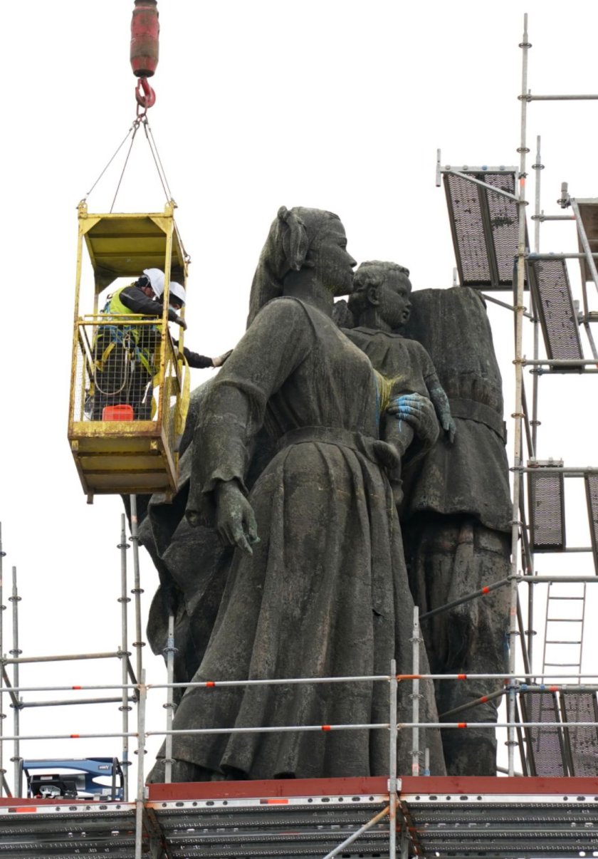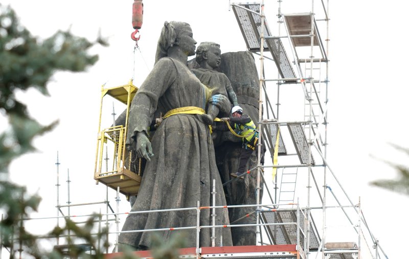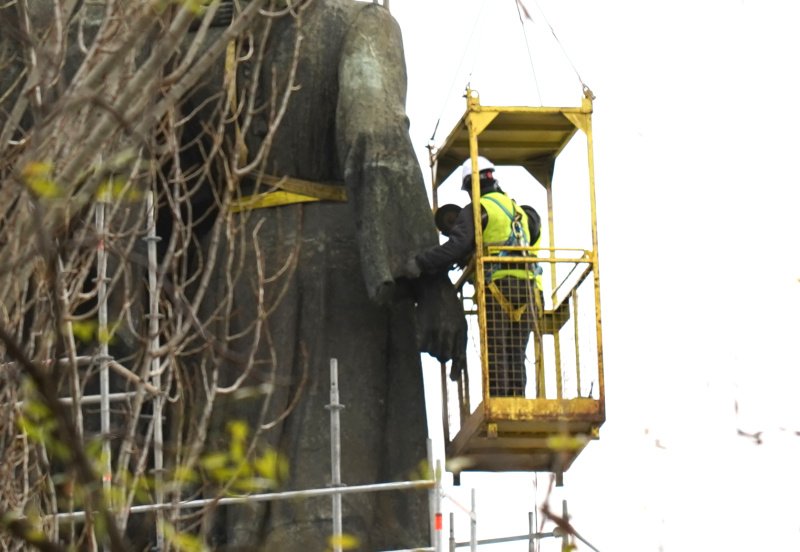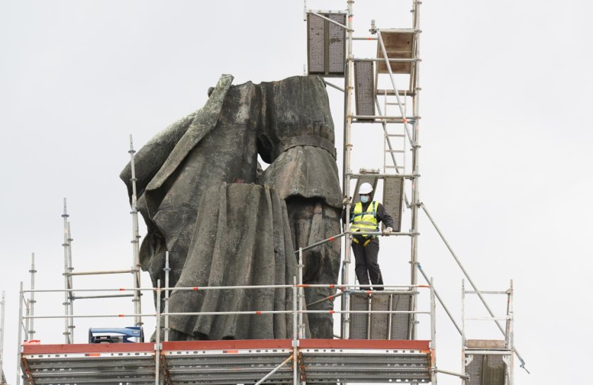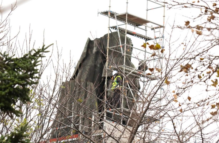 Трети ден продължава демонтажът на Паметника на Съветската войска в центъра на София.