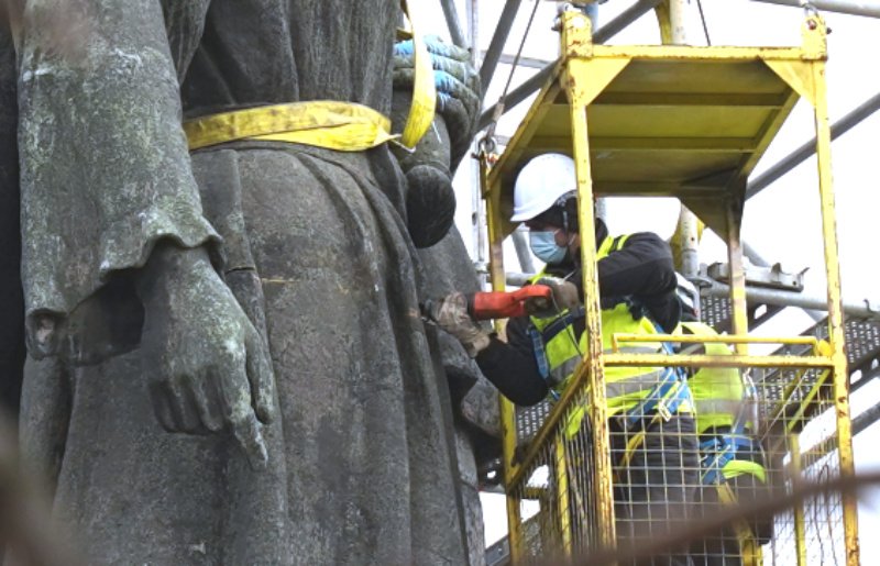 В региона на паметника продължава да има засилено полицейско наличие. Целта е монументът може да бъде отстранен и до началото на Коледните празници.