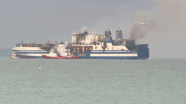 Трети ден продължава избавителната интервенция на ферибота в Йонийско море, който се възпламени покрай остров Корфу.