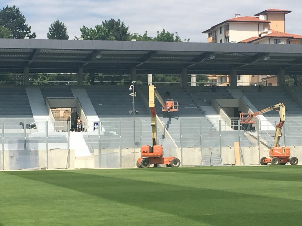 Третият нов бранш на стадион “Лудогорец Арена” е съвсем подготвен, видя Sportal.bg . Вече е сложена козирката и сега тече работа по монтирането на седалките. Гостуващият бранш ще бъде огледално копие на естрада “Моци”.