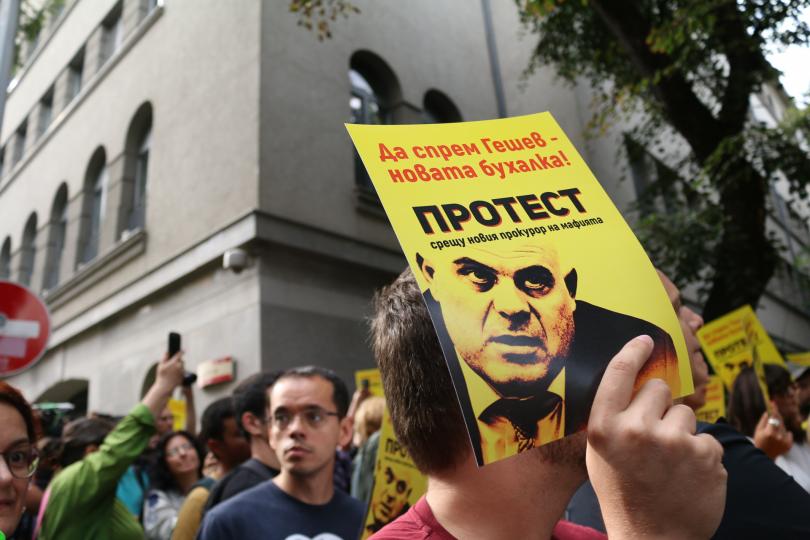Заседанието на ВСС беше съпътствано от протест срещу кандидатурата на Гешев