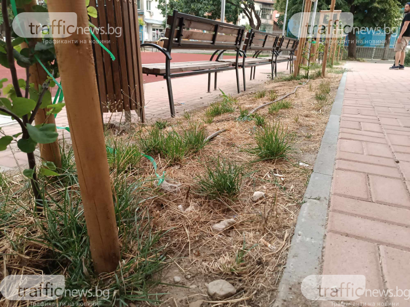 Тревните площи на квартал в централната част на Пловдив изсъхнаха поради неработещи поливни системи. За това сигнализират поданици на Аджисан махала пред TrafficNews. Районът им бе освежен по огромен план на общината, който стартира публично в края на 2021г. и неотдавна завърши.