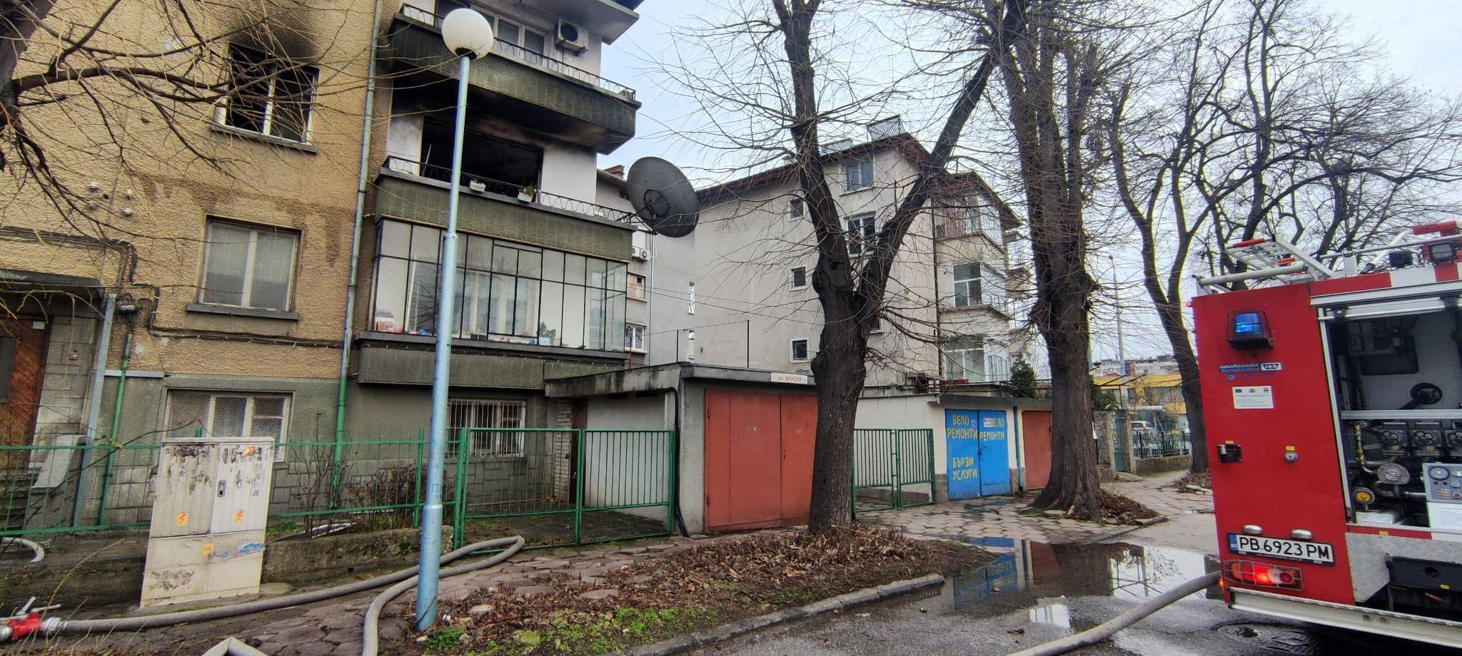 Сигнал за пожар в триетажна жилищна постройка на улица " Братия " е получен малко след 15 ч. Наложила се е евакуация на младеж, който е бил в постройката, а от пламъците леко е потърпевша стара жена, която след оказване на първа помощ, е превозена в болнично заведение.