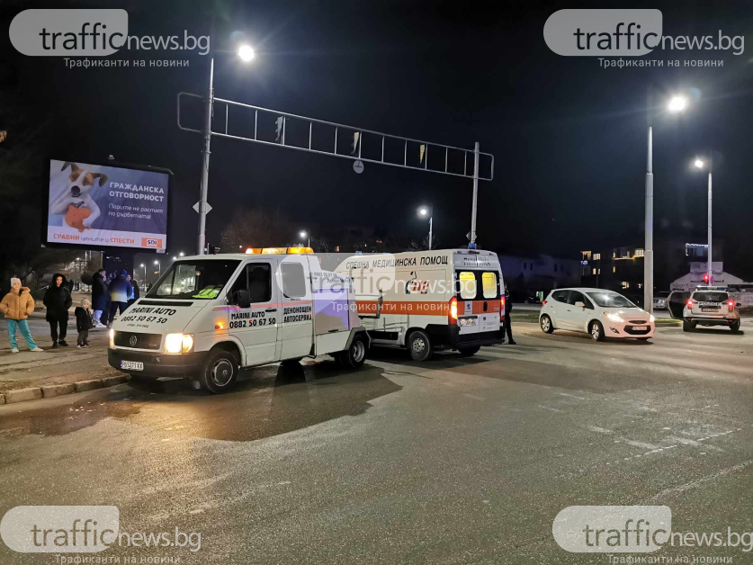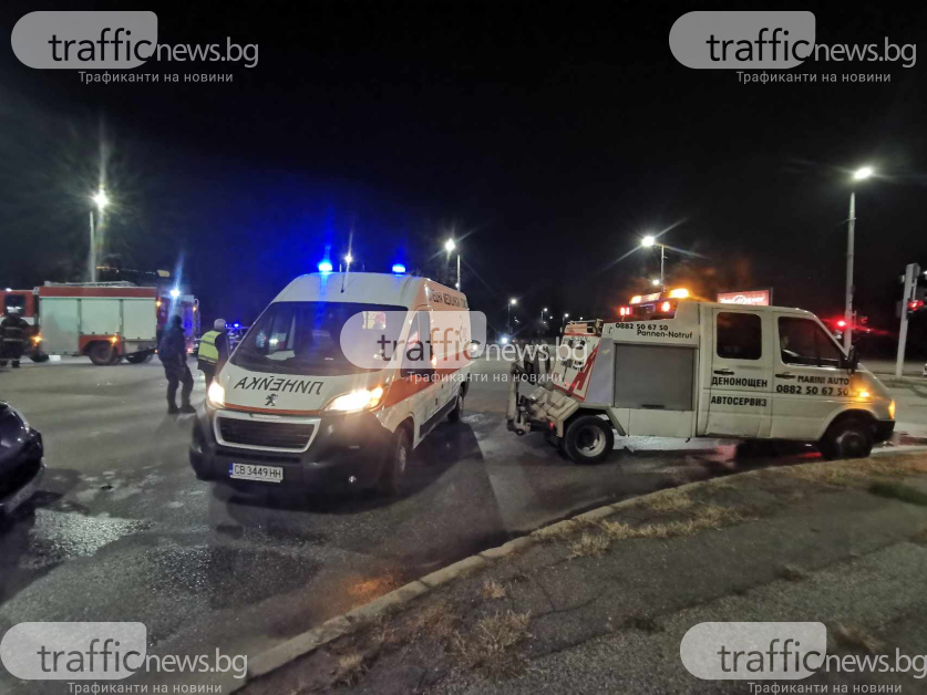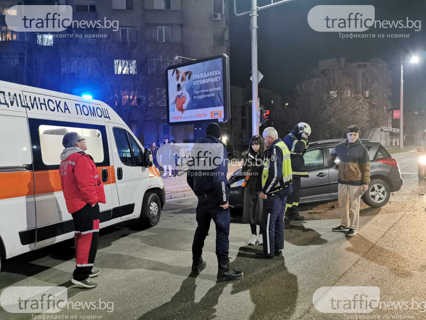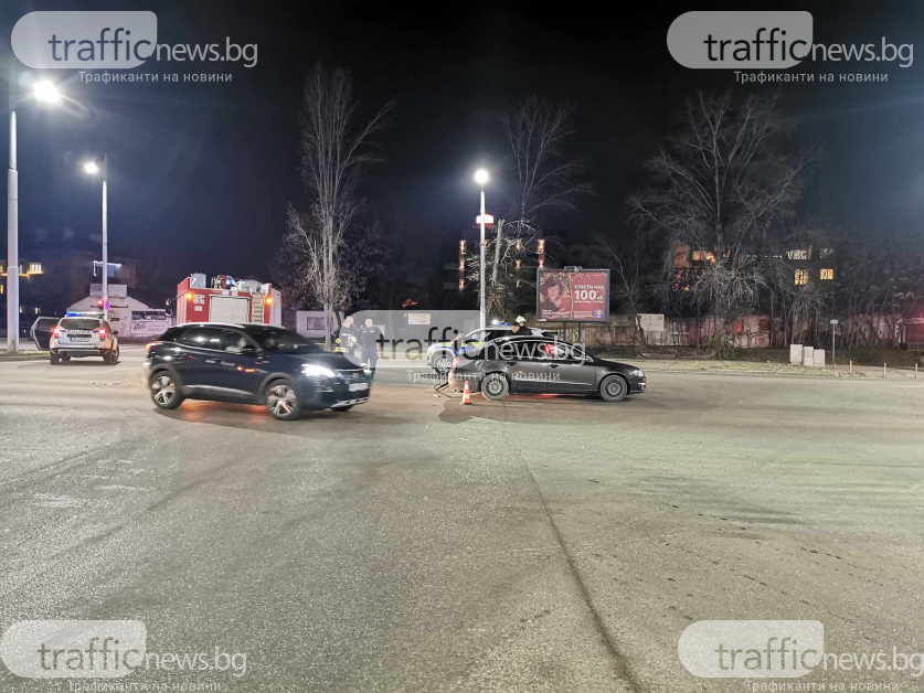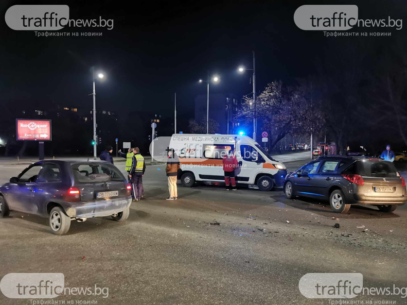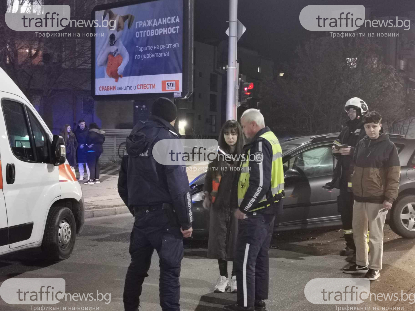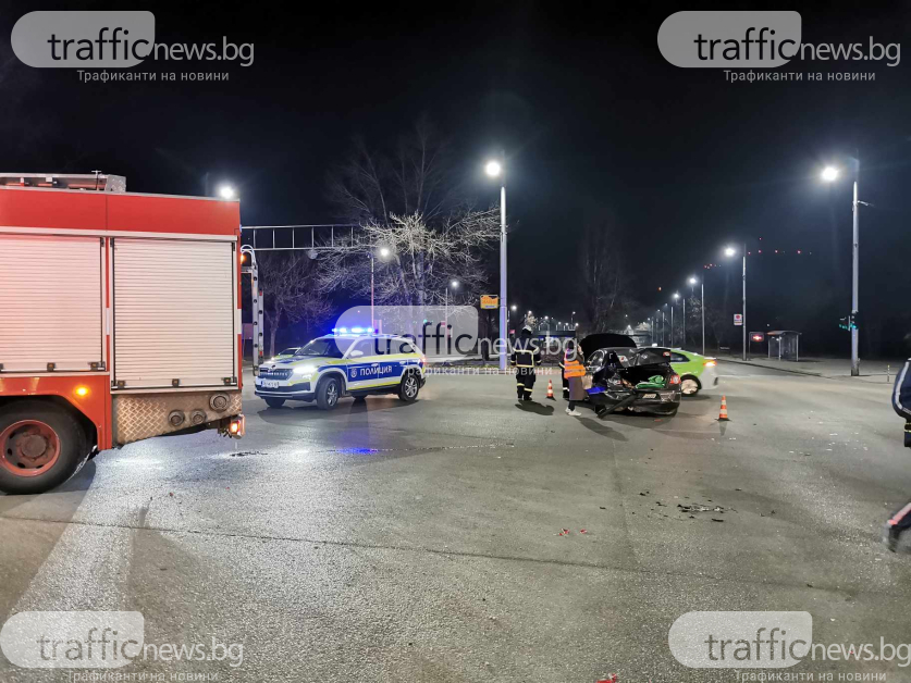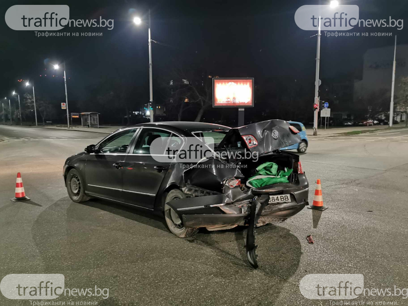Обновена: На мястото на случая сега има и екип на Пожарната, който да отстрани акумулаторите на колите. Към този час се взимат проби за алкохол и опиати на водачите, които са очевидно млади. Няма тежко ранени, екип на Спешна помощ въпреки всичко е на място и преглежда дете, което е в потрес от случилото се. 13-годишното ще бъде откарано в болница, с цел да му бъде направена фотография. До злополуката се е стигнало, откакто водачът на " Пасата " стопира внезапно на оранжева светлина на светофара, а другите две се удрят в него.