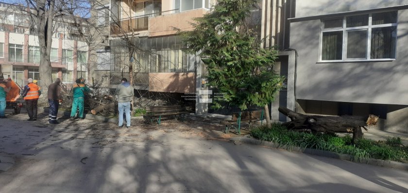 Около 14 часа четири деца са седели на пейката пред блок на улица " Богомил " 67, когато 60 годишно дърво се пречупило от мощния вятър и паднало върху тях.
