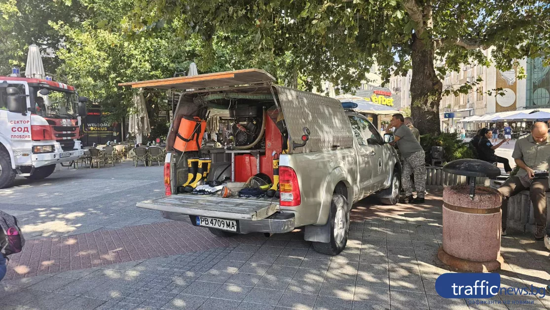 "Гасят голям пожар" пред Община Пловдив - три екипа огнеборци, АТВ и стълба са на място