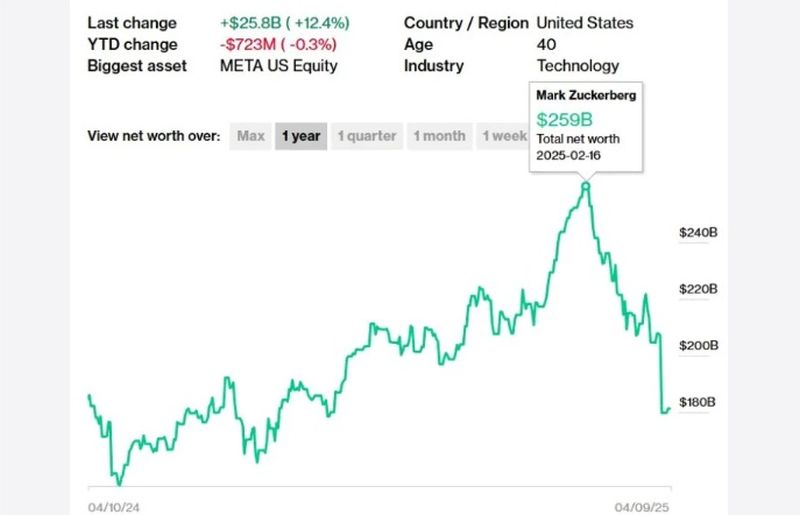 Промяната в прилежащата колона от началото на годината е загубата от началото на 2025 година Тази графика демонстрира, че откакто Доналд Тръмп пристигна на власт, Мъск е изгубил 100 милиарда, а след паузата на митата си е върнал една трета. Междувременно Зукърбърг е в по-добра обстановка: той загуби 700 милиона $ и си върна четири пъти повече.