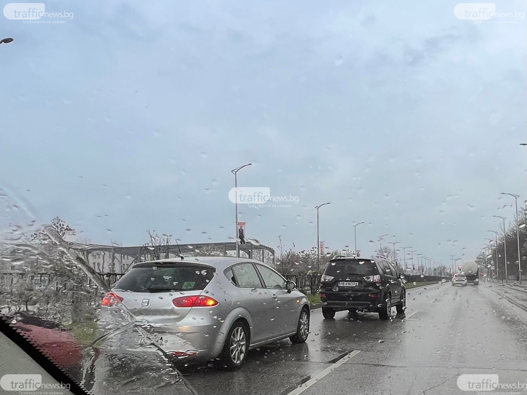 Припомняме, че верижната злополука затрудни за малко придвижването в Пловдив тази заран. Пътнотранспортно произшествие стана на бул. " България " наоколо до езиковите гимназии " Пловдив " и " Иван Вазов ". На мястото на случая с три коли, имаше екипи на полицията и кола за спешна помощ.