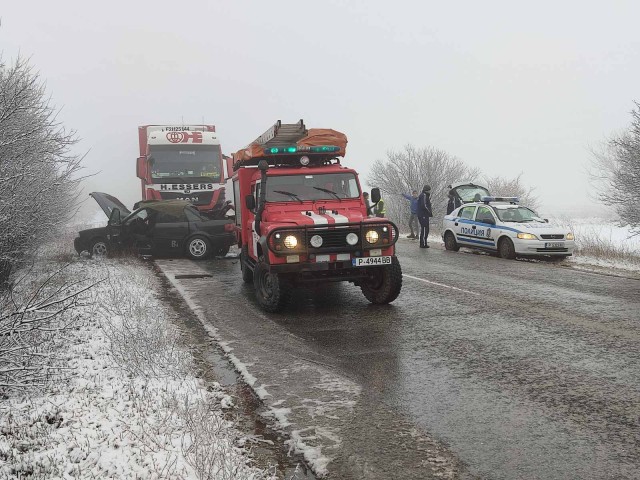 В сектора сред селата Бъзън и Писанец са се блъснали румънски камион и „ Ауди “ с разградска регистрация.
