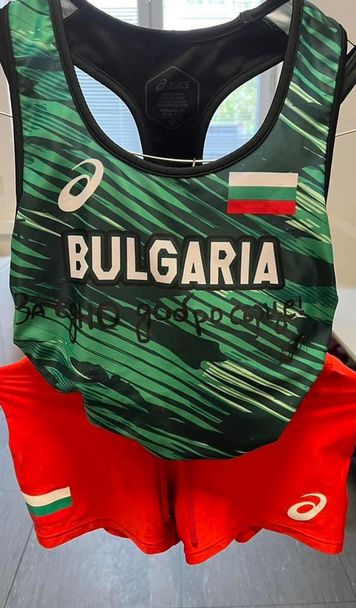 За търга най-бързата българка Ивет Лалова предостави фланелка на своята лекоатлетическа академия с нейн подпис.