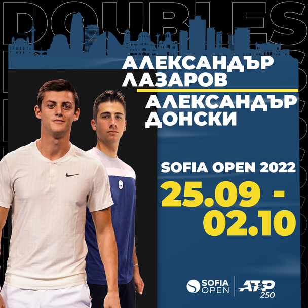 Две български двойки получиха „ уайлд кард “ за Sofia Open 2022. Александър Лазаров и Александър Донски и Пьотр Нестеров и Янаки Милев ще вземат участие в конкуренцията при двойките. Седмото издание на шампионата от категория ATP 250 ще се организира от 25 септември до 2 октомври в „ Арена Армеец ”.
