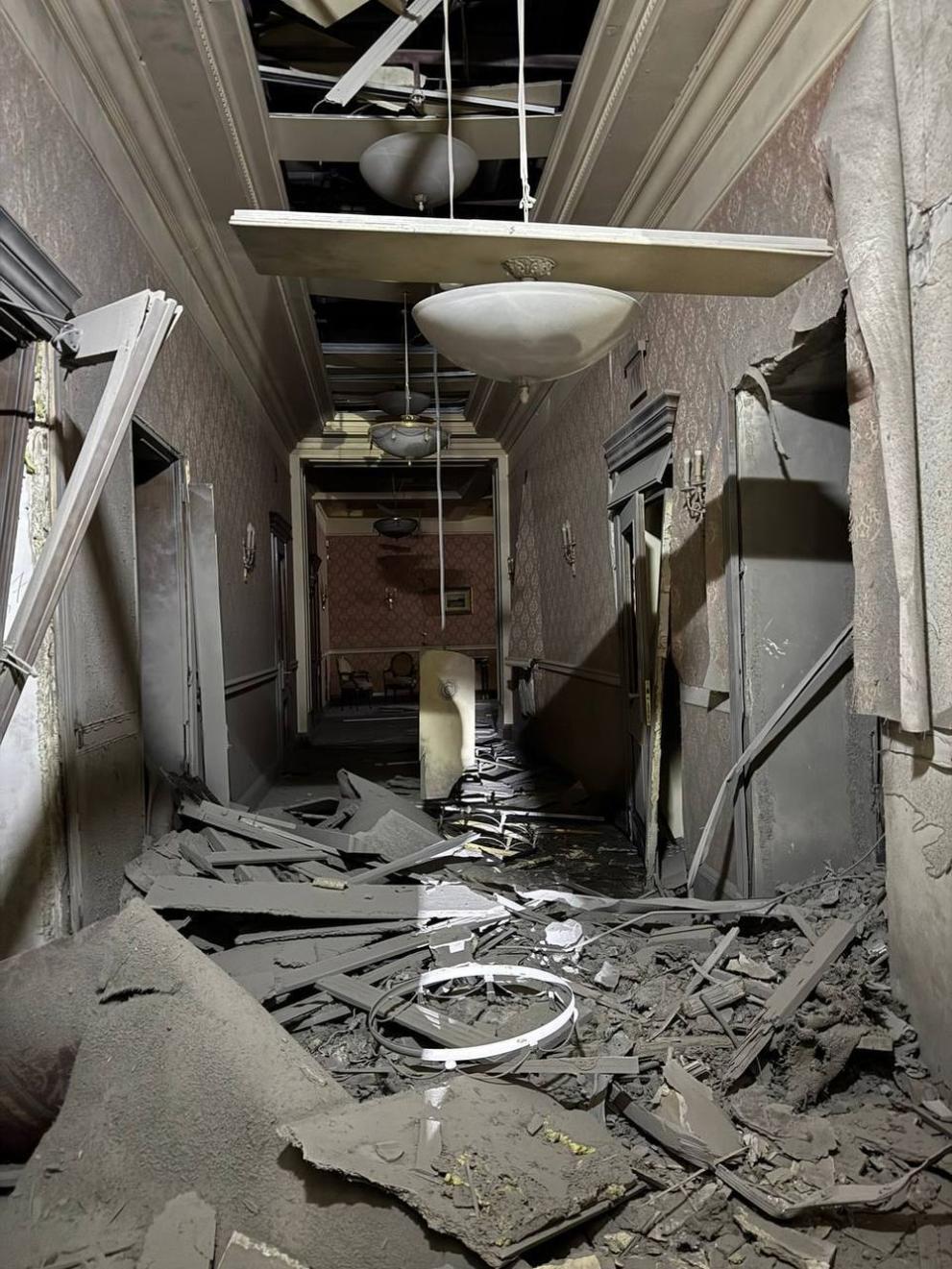 Комуналните служби работят по премахване на следствията от офанзивата, като редом се правят прегледи на всички намиращи се наоколо здания, гласи известието на Труханов.