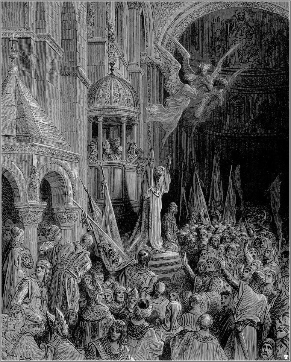 An artistic depiction of a preacher promoting the crusades, Gustave Doré, 1892