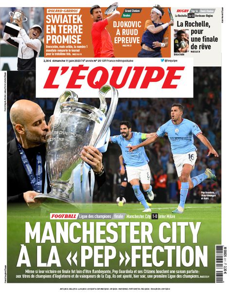 Френският “Екип ” хвали Гуардиола с: “Пепфектен Манчестър Сити ”, а в немския “Билд ” са горди с капитана на “небесносините ”: “Гюндоган подвигна трофея ”.