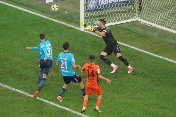 Зенит несъмнено с затрудняваше против подредената отбрана на отбора от Екатеринбург, а и контрите на Урал не бяха по никакъв начин безвредни. в 31-ата минута обаче резултатът беше подравнен. По подигравка на ориста, това стана още веднъж след автогол. Питерци получиха нарушаване, след което Паредес центрира остро в наказателното поле, а Портнягин напълно леко отклони топката, само че задоволително, с цел да заблуди Годзюр - 1:1.