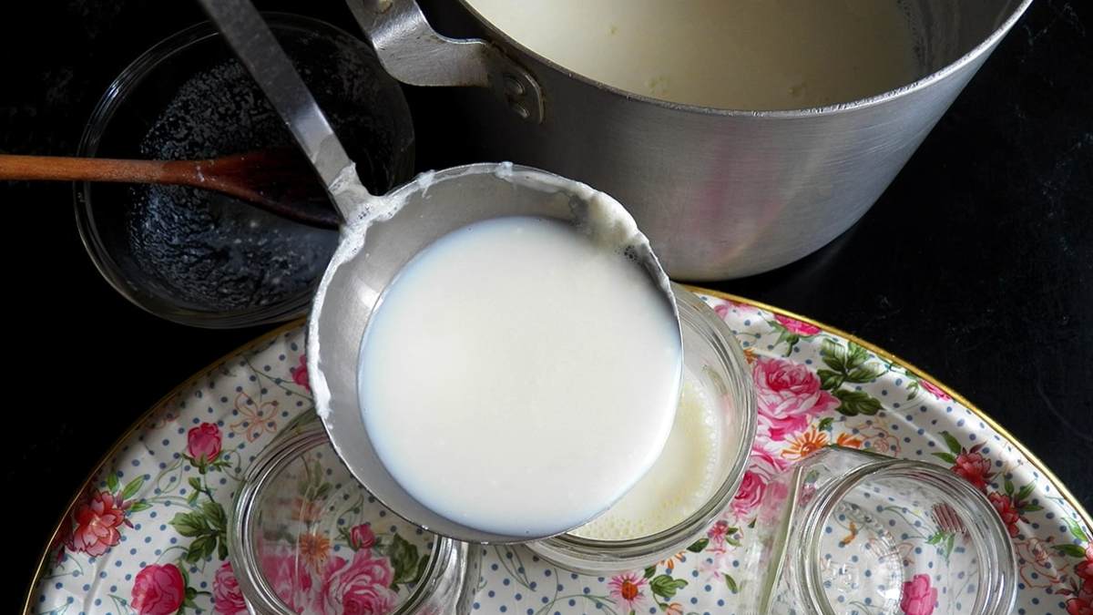 Охладете млякото до 37 градуса. Ако температурата е прекомерно висока, суроватката ще се отдели, което ще скапе киселото мляко. Изсипете млякото в буркан.