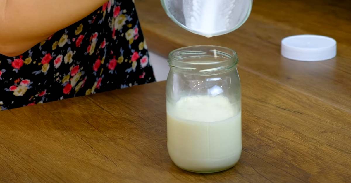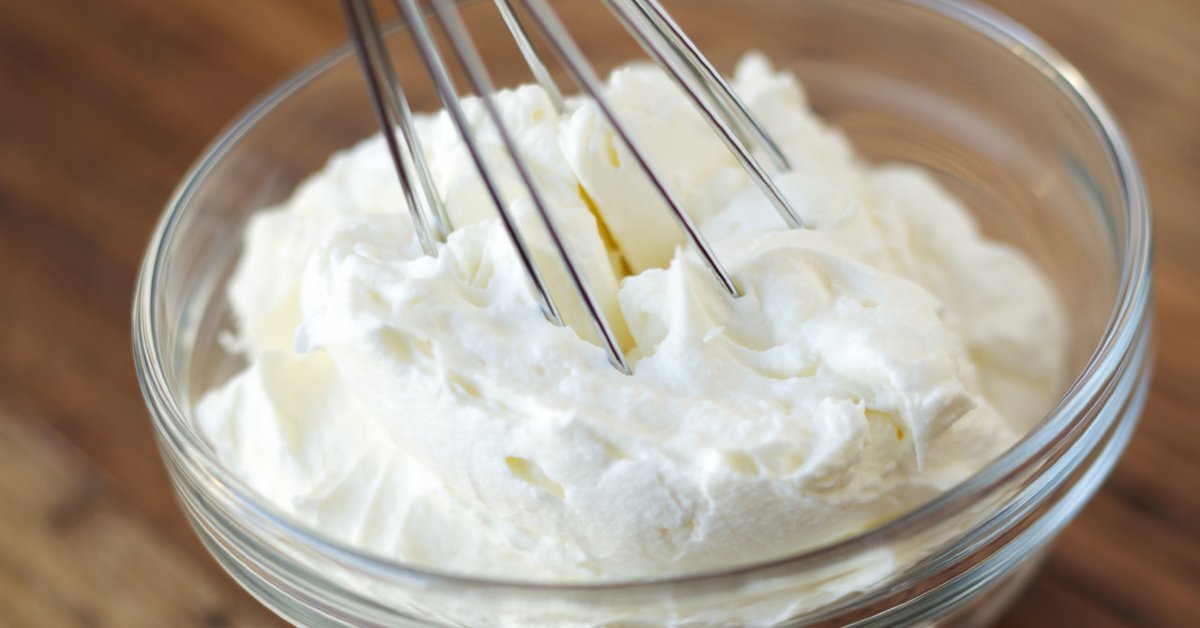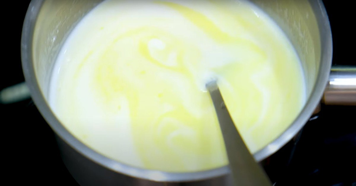 За да приготвите крема, смесете нискомаслено мляко (около 2%) и масло (72% масленост).