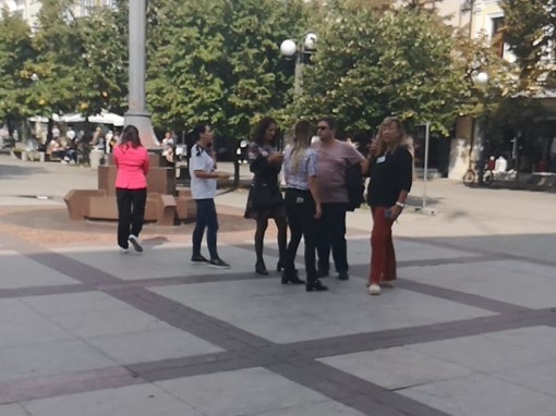 Заради мощния трус са евакуирани чиновниците на Община Бургас, които в този миг са пред постройката на кметството.