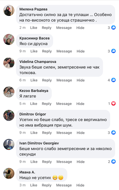 Не закъсняха и мненията в обществените мрежи, в които хората описаха по какъв начин са усетили земетресението.