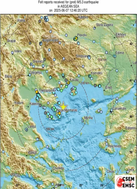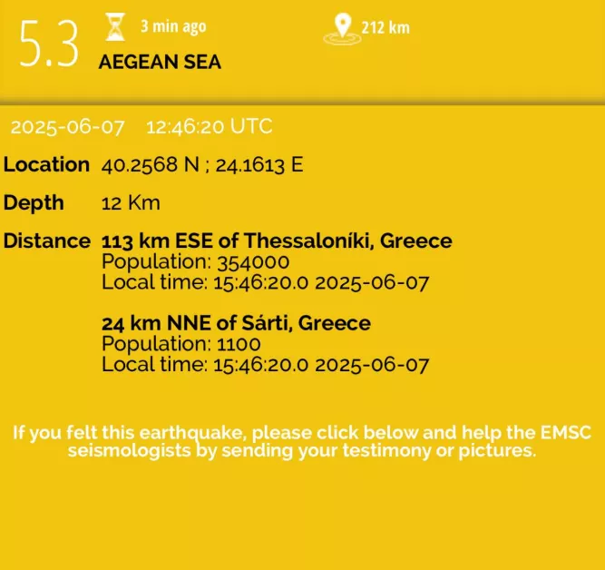 Трус с магнитуд 5.3 е е бил регистриран в региона на Егейско море в 15:46ч. българско време.