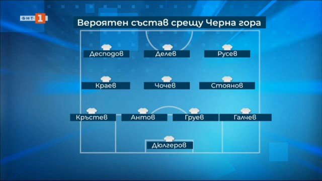 Младен Кръстаич ще направи някои промени в титулярния състав. Валентин Антон ще бъде в ценътра на отбраната. Най-вероятно Иван Дюлгеров ще бъде на вратата на националния ни тим, в предни позиции се чака да стартират Спас Делев и Георги Русев.