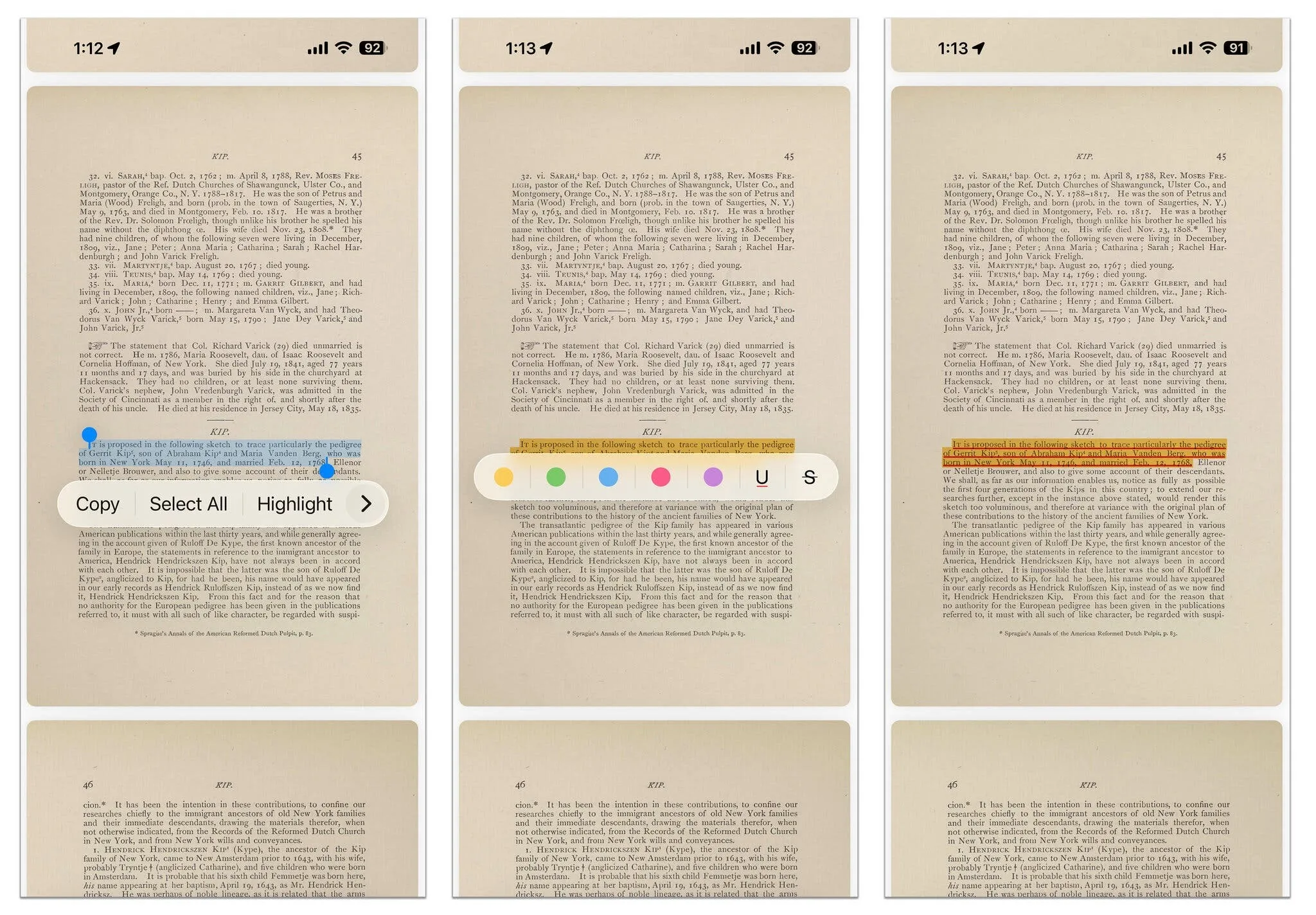 За да маркирате, наблегнете или задраскате текст в PDF файл, изберете думите, които желаете да анотирате, и докоснете „ Маркиране “ от изскачащото меню.