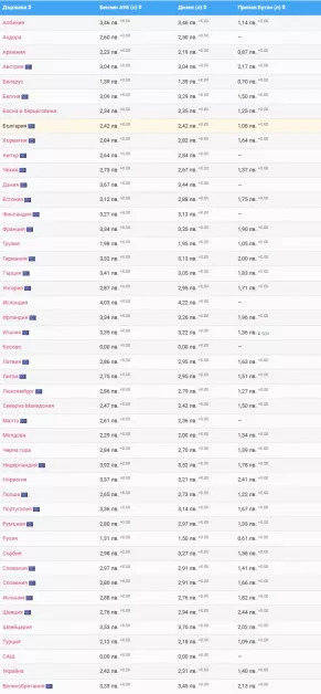 Ето и цялостен лист на цените на горивата в Европа: