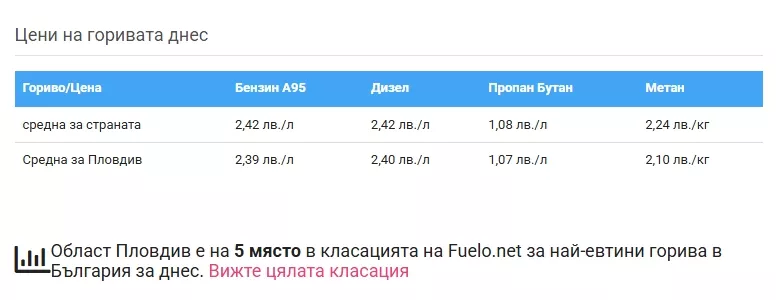 България спада приблизително към по-евтините пазари в Европейски Съюз – литър бензин тук коства 2,42 лева , което ни слага на 12–14 място в обратна посока в Европа по на ниска цена гориво.