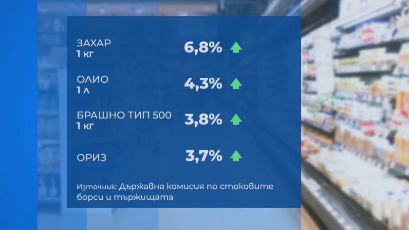 Основни хранителни артикули нарастват през първата седмица на годината, регистрират от Комисията по стоковите тържища. Захарта се покачва с съвсем 7%, а олиото, брашното и оризът със приблизително 4%.