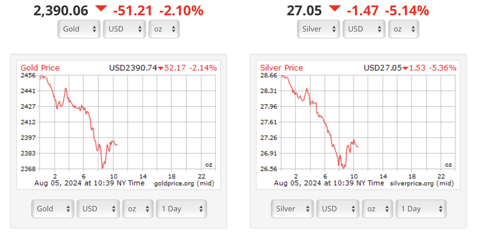 Към 17;40 ч. (българско време) спот златото се намали с 2.1%, достигайки $2,390.06 за тройунция, до момента в който фючърсите върху златото в Съединени американски щати спаднаха с 1.35% до $2,436.10.