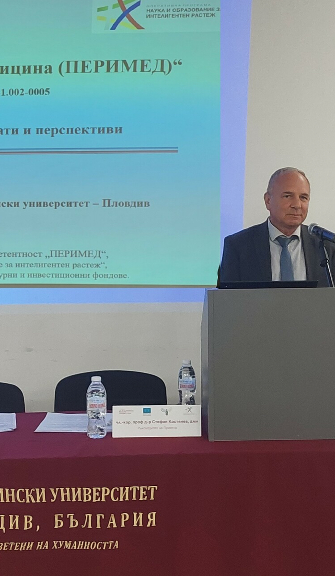 Проект ПЕРИМЕД сплотява напъните на учените от Медицински университет – Пловдив, Пловдивския университет „ Паисий Хилендарски “ и Института по минералогия и кристалография при Българска академия на науките. Основната цел на плана е построяването на съвременна научноизследователска инфраструктура в региона на персонализираната медицина, с акцент върху онкологията, онкохематологията, новаторските лекарствени носители за прицелна терапия, биоинженерни технологии и биосензори. По план ПЕРИМЕД са построени 8 лаборатории, оборудвани с новаторска, високо профилирана инсталация за осъществяване на научни проучвания на най-високо европейско равнище. Реализирани са 12 огромни иновационни научноизследователски стратегии, регистрирани са пет патента и поръчки за патенти, три потребни модела, редица научни изявления. Проектът се финансира с над 23 млн. лв. от Оперативна стратегия „ Наука и обучение за образован напредък “ с поддръжката на Европейския фонд за районно развиване.