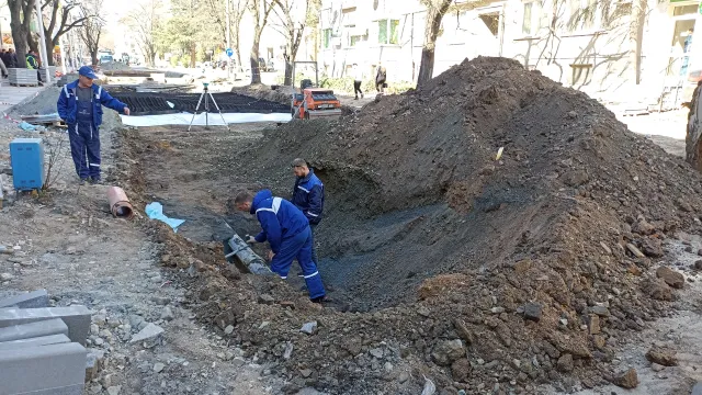 Тръбата е спукана в сектор, където се прави замяна на ВиК тръби.