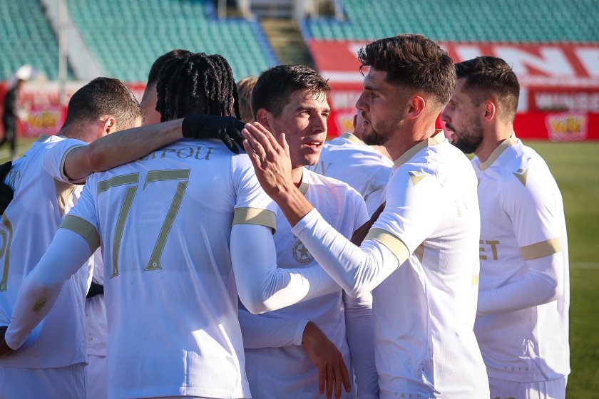 " Червените " откриха резултата в 27-ата минута. Вратарят Георгиев мазета с крайник шут на Станислав Шопов, само че топката отиде в Коялипу, който не си у овладя добре, само че бранителите не съумяха да ми попречат и тя падна на десния му крайник, като той съумя да е вкара в мрежата.