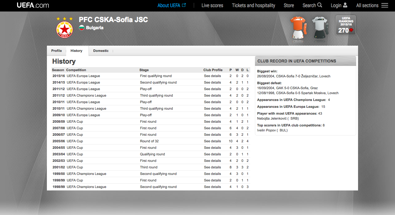 В сайта на УЕФА: ЦСКА-София с екипа и историята на Литекс