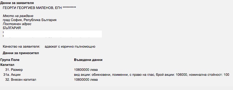 ЦСКА-София е внесъл поръчка в Търговския указател за увеличение на уставния си капитал. Желанието е той да се вдигне до 10 600 000 лв.. В момента капиталът на клуба е 6 600 000 лева, а от тях са импортирани 100 бона. Останалите 6,5 млн. лева са дълг на ПФК Литекс Ловеч към “Литекс Комерс”.
