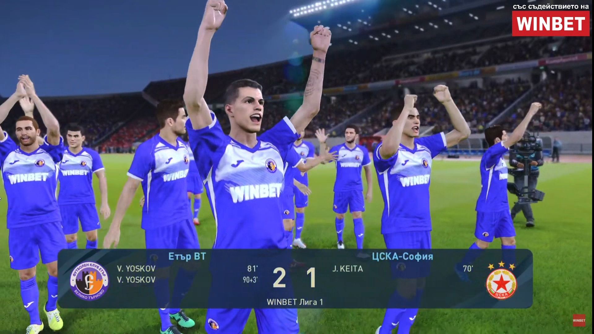 ЦСКА-София на Александър Милорадев отпадна от присъединяване във финалната фаза на WINBET е-футбол лига, откакто доближи до бараж за влизане в топ 14, който след това загуби. И двата мача на 50-годишния геймър бяха излъчени нощес по Sportal TV. Милорадев приключи трети в крайното класиране на група D от трета фаза на шампионата, макар че позволи цялостен поврат против Етър (ВТ) на Линдсей Хъгхей-Хол. Неговият ЦСКА-София получи правото да играе на бараж, защото приключи трети в класирането, поради по-добро съответствие в директните дуели против американския професионален баскетболист, който в предишното е играл за колежа на Уебър Стейт. Въпреки мощната преса на домакините в по-голямата част от времето, до 70-ата минута резултатът беше 0:0. ЦСКА-София наруши головото мъртвило посредством попадение на Кейта. Интригата в дуела се завърна в 81-ата минута, когато Йосков означи изравнителен гол за Етър (ВТ). Победата за домакините пристигна още веднъж след удар на Йосков в последните секунди от добавеното от виртуалния арбитър 3-минутно продължение на постоянното време.