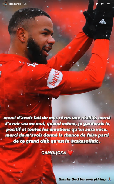 " Благодаря, че направихте фантазиите ми действителност. Благодаря, че повярвахте в мен. Също по този начин ще запазя положителни мемоари за всички страсти, които изживяхме дружно. Благодаря, че получих късмет да бъда част от този огромен клуб, какъвто е ЦСКА ", написа Баи в " Инстаграм ".