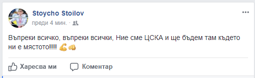 “Въпреки всичко, макар всички, Ние сме ЦСКА и ще бъдем там където ни е мястото!!!!”, написа някогашният началник на Литекс.