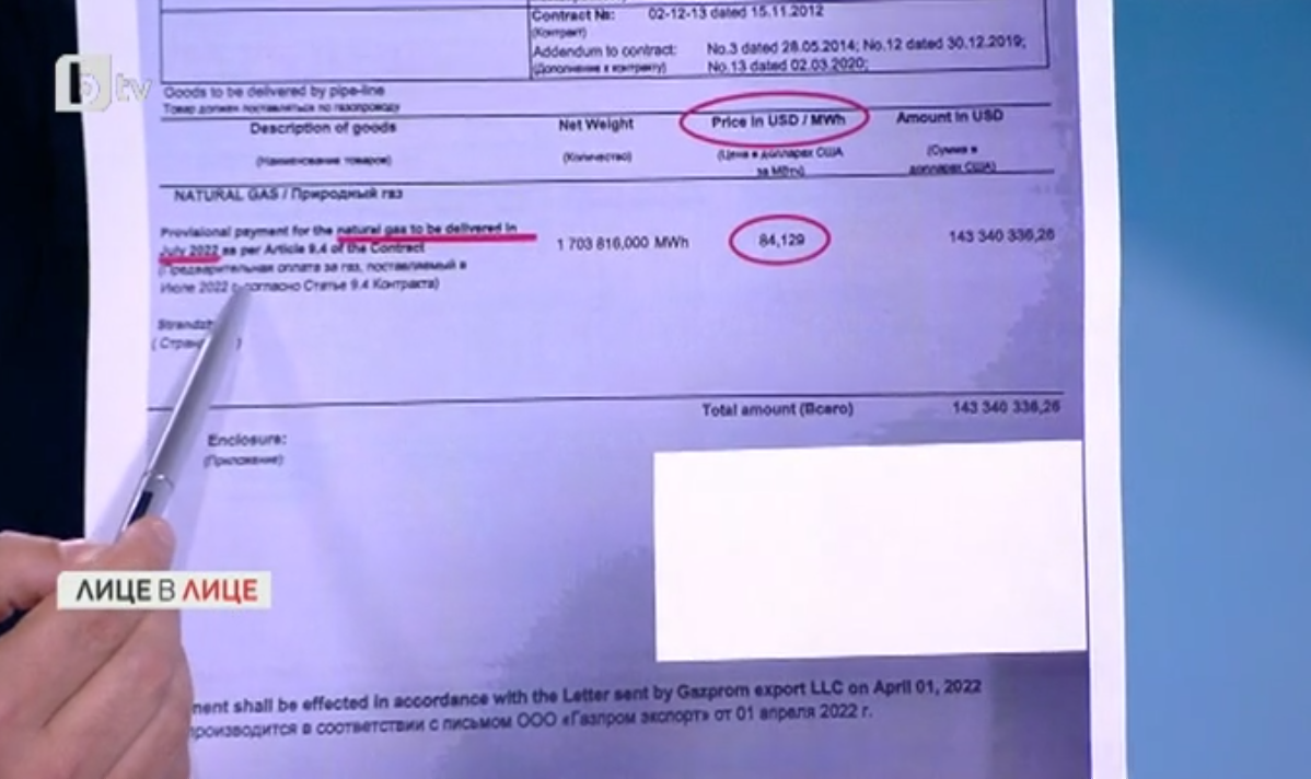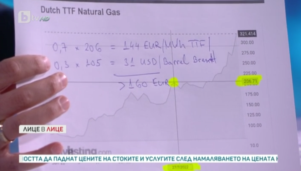 Политическа партия настояват, че в случай че България трябваше да купи газ от " Газпром " за юли - цената на съветския природен газ нямаше да е 86, а 160 евро поради формулата по контракта (70% от показателя Dutch TTF, който по това време е на 206 евро, + 30% петролни деривати).
