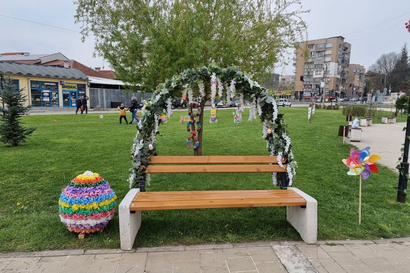 С нови детайли е великденската декорация на Плевен тази година. Близо до площад " Възраждане " е инсталирана цветна арка, към която са подредени декоративни пиленца.