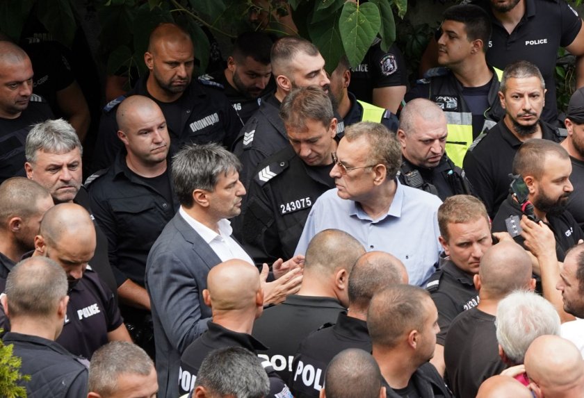 А пред Сараите в Бояна се стигна до напрежение сред полицията и симпатизанти, които упорстват да получат пояснение на какво съображение Ахмед Доган е изпъден от двата парцела. Вчера някогашният транспортен министър и досегашен съучастник на Доган, Данаил Папазов съобщи, че е притежател на парцелите и изиска Доган да ги напусне.