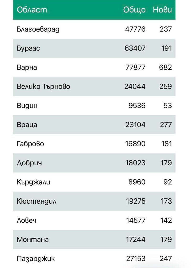 София, Пловдив и Варна са трите области, в които има по над 600 новорегистрирани с инфекцията, единствено за ден.