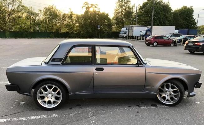 Самоделката е с истински фарове и стопове от 2105. Но матовият сив цвят е от палитрата на AMG.